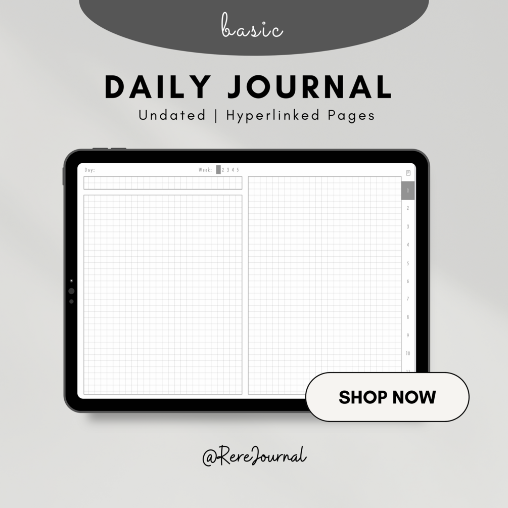 61 hyperlinked basic daily journal for Goodnotes, OneNote, Penly and other apps.